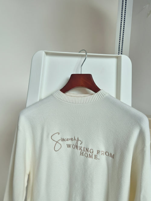 Continuing Vivy’s signature play on words, this cream knit is for the modern multitasker. It’s designed to look polished enough for a surprise Zoom meeting, while being soft enough for a mid-afternoon sofa break. Professional? Technically. Comfy? Absolutely.